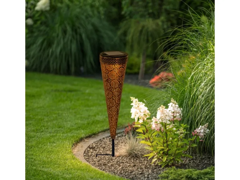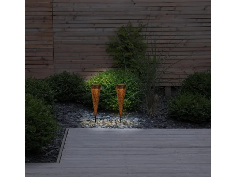 Die Farbe Braun unterstreicht die Vielseitigkeit, Anpassungsfähigkeit und Modernität dieser Leuchte. Die Maße dieses Artikels betragen 8,5 cm in der Breite, 8,5 cm in der Länge und 40 cm in der Höhe. Die Solarleuchte ist mit 2 LEDs ausgestattet, die eine langlebige und angenehme Beleuchtung garantieren.