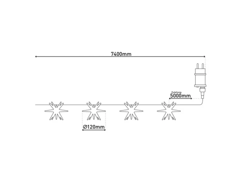 LED-Lichterkette 3D-Sterne mit ca. 500 cm Kabellänge