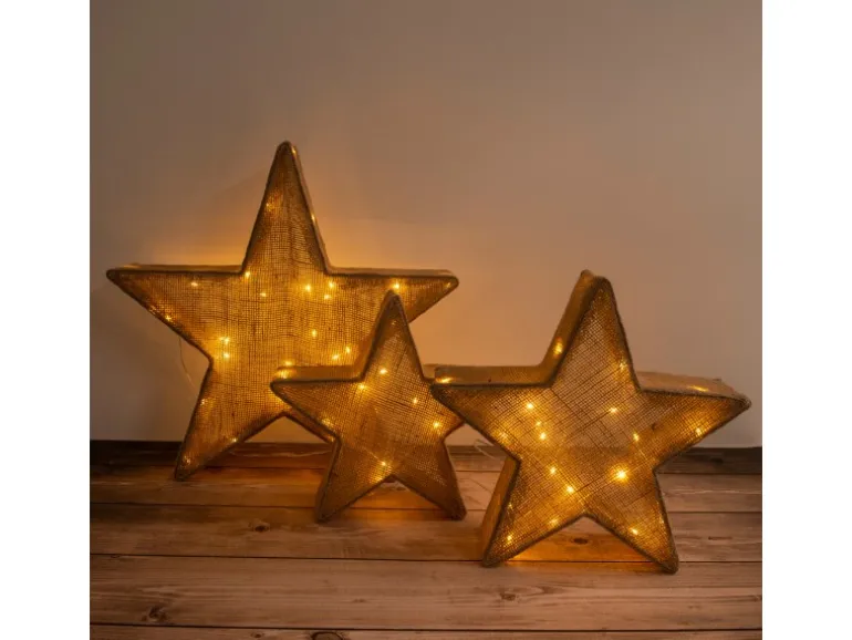 3er-Set LED-Deko-Weihnachtssterne braun – der ultimative Blickfang für die Weihnachtszeit Weihnachtslichter gehören einfach zur festlichen Jahreszeit und schaffen eine unvergleichliche Atmosphäre voller Wärme und Glanz. Mit unseren beleuchteten Weihnachtsartikeln bringen Sie diese Magie direkt in Ihr Zuhause. Ob leuchtende Sterne, funkelnde Kugeln oder strahlende Figuren – jede Dekoration sorgt für ein stimmungsvolles Ambiente und macht Ihr Zuhause zu einem festlichen Blickfang. Lassen Sie sich von der Vielfalt und dem Lichterglanz inspirieren und zaubern Sie unvergessliche Weihnachtsmomente! 3er-Set LED-Deko-Weihnachtssterne braun im Landhaus Stil – sternförmig und sehr rustikal. Die braune Weihnachtsdeko aus Metall, Kunststoff und Textilmaterial ist ein wunderbares Accessoire und verwandelt jeden Raum. Dieser Artikel hat eine Größe von 50 (Länge) x 10 cm (Breite) x 48 cm (Höhe). Der Weihnachtsartikel ist mit 58 energieeffizienten LED-Leuchtmittel ausgestattet, was eine langlebige und energieeffiziente Beleuchtung garantiet. Mit 4 Watt Leistung leuchtet der Artikel 40 Lumen hell und hat eine Farbtemperatur von 3000 Kelvin. Der Stripe wird über einen Netzanschluss betrieben, das heißt er benötigt eine normale Steckdose. Dieser Artikel ist mit einem Euro-Flachstecker ausgestattet. Dieses Produkt ist eine Klasse 3 nach IP44-Norm.