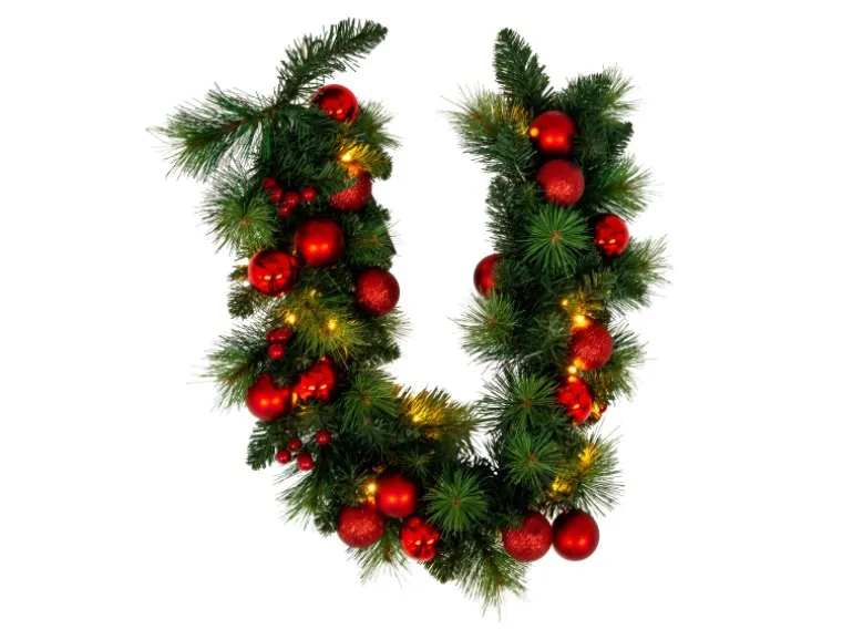 Verleihen Sie Ihrem Zuhause festlichen Glanz mit unseren beleuchteten Weihnachtsartikeln Begrüßen Sie die Weihnachtszeit mit funkelnder Beleuchtung, die Ihr Zuhause in festlichen Glanz taucht. Unsere beleuchteten Weihnachtsartikel zaubern eine gemütliche, festliche Atmosphäre und setzen dekorative Highlights in jeder Ecke. Ob strahlende Sterne, beleuchtete Engel oder glitzernde Tannenbäume – schaffen Sie mit unserer Auswahl an Weihnachtslichtern ein einladendes Ambiente, das Wärme und Freude in Ihr Zuhause bringt. Lassen Sie Ihre Räume in festlichem Licht erstrahlen und machen Sie die Feiertage noch unvergesslicher! LED-Weihnachtsranke „NOEL“ rot im Landhaus Stil – organisch und sehr dekorativ. Diese rote Weihnachtsdekoration aus Metall und Kunststoff verbreitet weihnachtliche Atmosphäre und eignet sich auch als perfektes Geschenk für die Adventszeit! Dieser Artikel hat eine Größe von 100 (Länge) x 12 cm (Breite) x 20 cm (Höhe). Dieser Weihnachtsartikel ist mit 20 hochwertigen Diode ausgestattet, die ein angenehmes Licht erzeugt. Diese Leuchte ist ein perfektes Accessoire für jede Weihnachtsdekoration. Mit ihren 5 Lumen und einem Kelvin Wert von 3000 erzeugt sie weihnachtliche Stimmung. Mit dem praktischen Druckschalter lässt sich der Artikel spielend leicht ein- und ausschalten. Der Artikel wird mit Batterien betrieben, das macht sie unabhängig von Steckdosen. Die Batterien müssen separat erworben werden. Dieser Weihnachtsartikel verfügt über eine bequeme Timerfunktion: Mit ihr lässt er sich einfach und bequem voreinstellen und wird dann zu einer bestimmten Uhrzeit automatisch ein- und ausgeschaltet. Dieses Produkt ist eine Klasse 3 nach IP44-Norm.