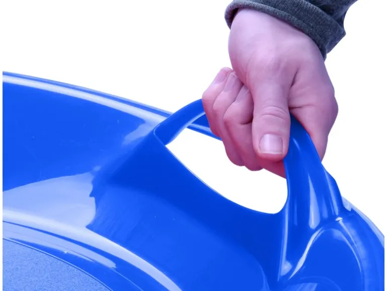 Der absolute Rodelspaß für den Winter! Dank seiner leichten Bauweise hat der Tellerschlitten fast kein Eigengewicht und wiegt nur knapp 0,6 kg. So können die Kleinen den Rodel problemlos alleine den Rodelhang hoch tragen und mit doppelt Spaß wieder herunter rutschen. Der klassische Porutscher darf in keinem Winter fehlen. Schnell kann man ihn unter den Arm klemmen und schon geht es ab auf den Hang! Dieser Tellerrutscher ist ein Leichtgewicht und trotzdem stabil. Die zwei Griffe bieten bei der Abfahrt zusätzliche Sicherheit und sind optimal zum Tragen geeignet. Dem Rodelspaß steht also nichts im Wege. Wer schon einmal mit einem Tellerrutscher den Schneehang hinunter gefahren ist, weiß welchen Spaß dieser einfache und klassische Rodel bringt. Der Schlitten ist aus hochwertigem Kunststoff gearbeitet, der natürlich frostsicher und auch elastisch genug ist, den harten Anforderungen standzuhalten. Bis Weihnachten oder bis zum nächsten Winter sind auch zwei oder mehr Schlitten platzsparend verstaut, da sie nestbar sind. Die Maße betragen ca. 60 (L) x 60 (B) x 7 (H) cm. Der Schlitten ist problemlos bis 50 kg belastbar. Achtung! Nicht geeignet für Kinder unter 6 Jahren. Benutzung unter unmittelbarer Aufsicht von Erwachsenen. Alle Maßangaben sind Circa Angaben und beziehen sich auf maximale Außenmaße des Artikels. Das Versandgewicht beruht ebenfalls auf Circa Angaben. Sollten Sie genauere Angaben benötigen, wenden Sie sich bitte an unseren Support.