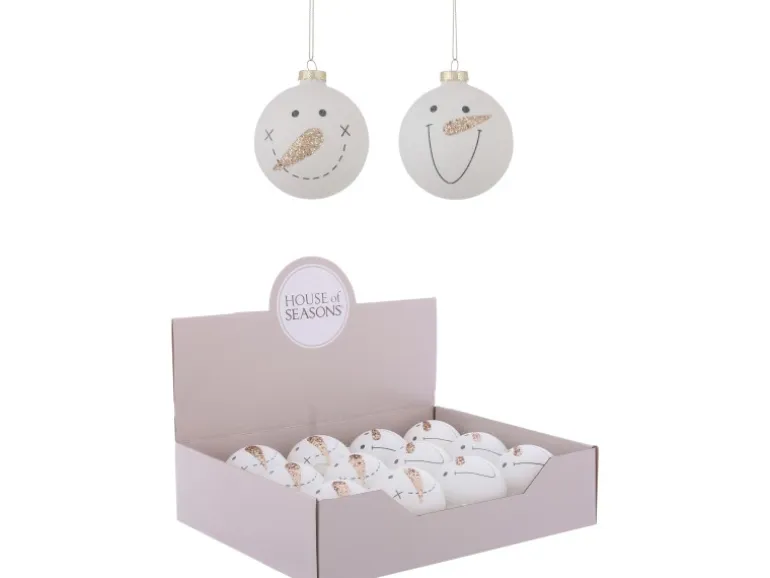 Ornament Kugel Schneemanngesicht Weiß Ø 8 cm