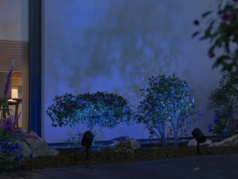 Der Strahler ist absolut wetterbeständig und lässt sich nach Bedarf ausrichten, sodass Pflanzen in der Dunkelheit in Szene gesetzt werden können. Dank der Steuerung via Zigbee 3.0 ist kein weiteres Zubehör notwendig, um Farbeinstellungen vorzunehmen. So werden atmosphärische Momente im Garten geschaffen, und die Landschaft erstrahlt am Abend in schönem Licht.