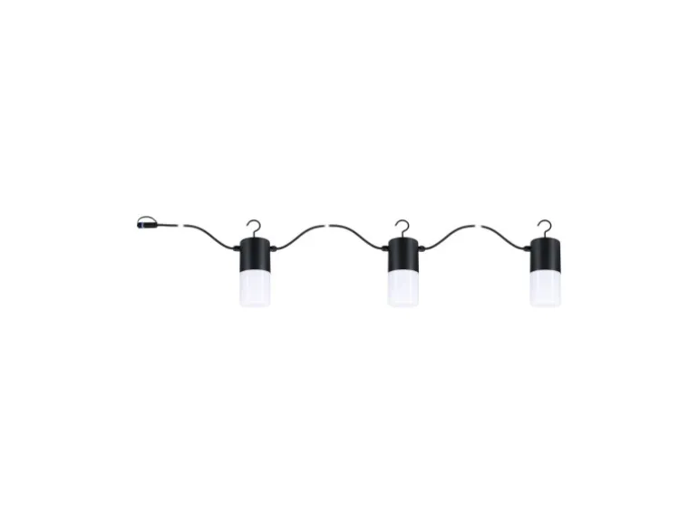 Das Kabel zwischen den einzelnen Leuchten hat eine Länge von 2 m. Sie ist kombinierbar mit allen Zubehörteilen aus der Plug & Shine Serie. Die Leuchtenkette bietet flexible Platzierungsmöglichkeiten dank der mitgelieferten Spieße und Deckenaufhängungen.