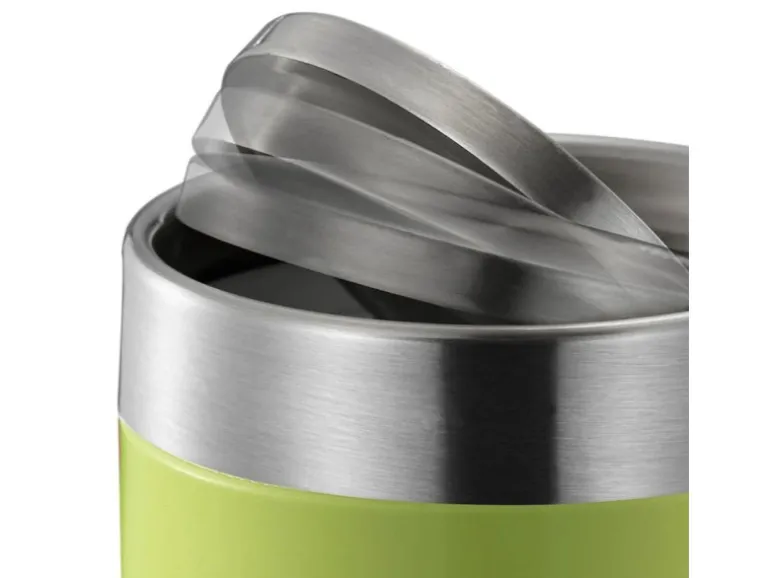Der praktische Flachschwingdeckel schließt sich automatisch nach Gebrauch