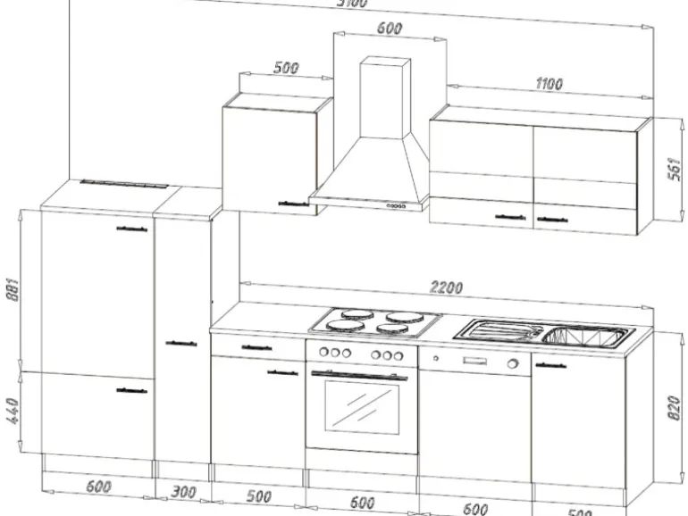 Die Respekta Küchenzeile besteht aus (HxBxT):