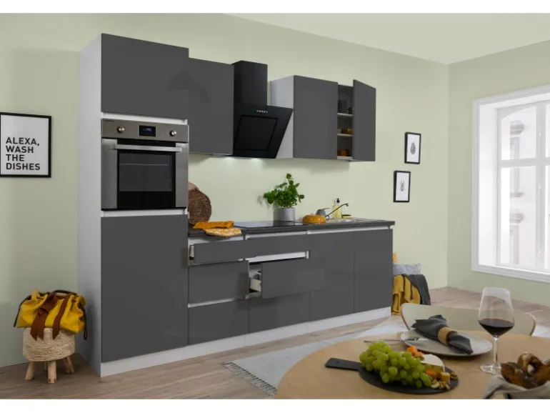 Die Respekta Premium Küchenzeile GLRP270HWG besteht aus (HxBxT):