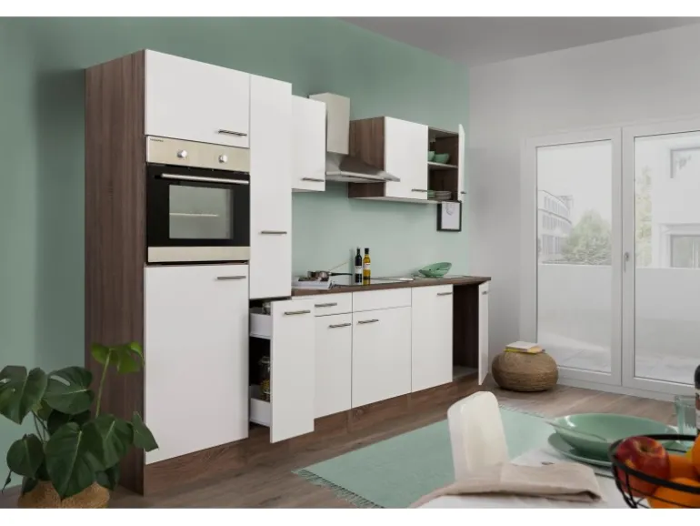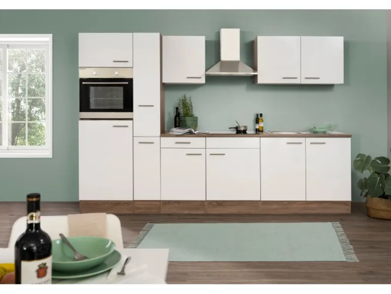 Die Respekta Küchenzeile besteht aus (H x B x T):