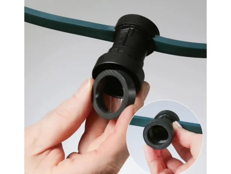 Das Kabel und die Fassungen der Lichterkette vertragen dabei Regenschauer, Wind, Kälte und natürlich Sonneneinstrahlung. So kann die Lichterkette ganzjährig im Freien montiert bleiben. Ein in die Fassungen eingesetzter Gummiring presst sich zwischen Leuchtmittel und Fassung und dichtet zuverlässig und dauerhaft ab.