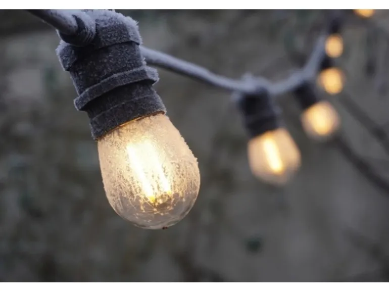 Das Kabel und die Fassungen der Lichterkette vertragen dabei Regenschauer, Wind, Kälte und natürlich Sonneneinstrahlung. So kann die Lichterkette ganzjährig im Freien montiert bleiben. Ein in die Fassungen eingesetzter Gummiring presst sich zwischen Leuchtmittel und Fassung und dichtet zuverlässig und dauerhaft ab.