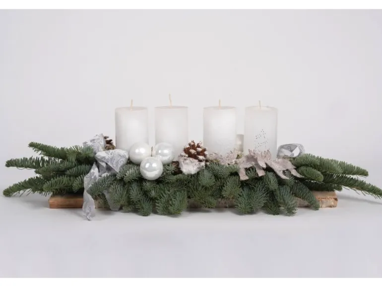 Rustikale Kerzen und festliche Schleifen