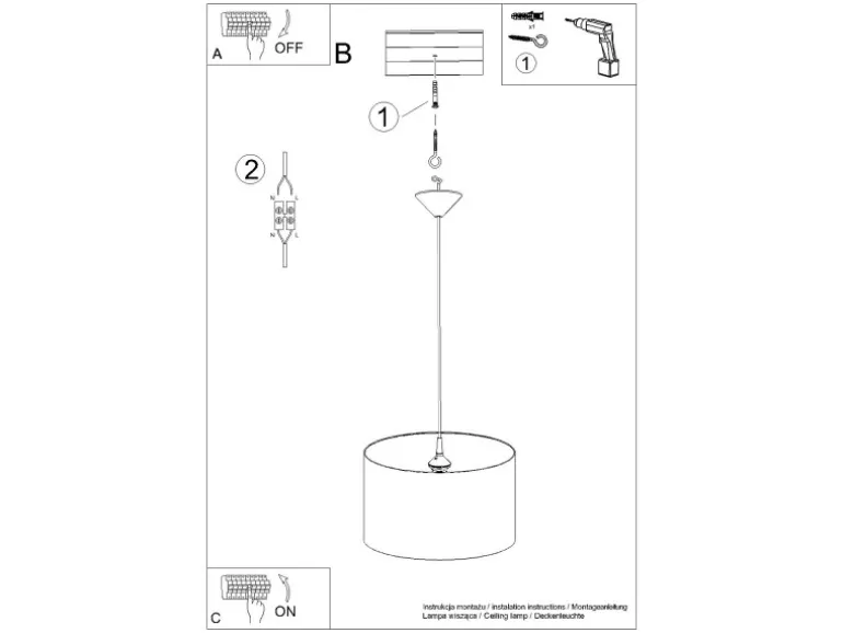 Leuchtmittel: E27, 1x max 15W LED, ~230V, 50Hz, IP20.