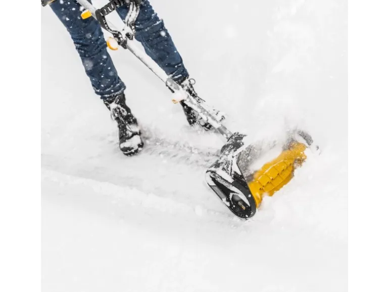 Diese akkubetriebene Schneefräse wird mit beiden Händen bedient, und der Zusatzgriff vorne ist sowohl in der Höhe verstellbar als auch neigbar, um Ihnen die bequemste Arbeitsposition und hohe Kontrolle während der Arbeit zu bieten. Die Schneefräse wird am primären Hauptgriff gestartet, indem zwei Knöpfe gleichzeitig gedrückt werden, was das Risiko einer unbeabsichtigten Aktivierung verringert.