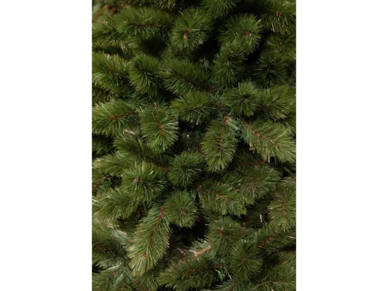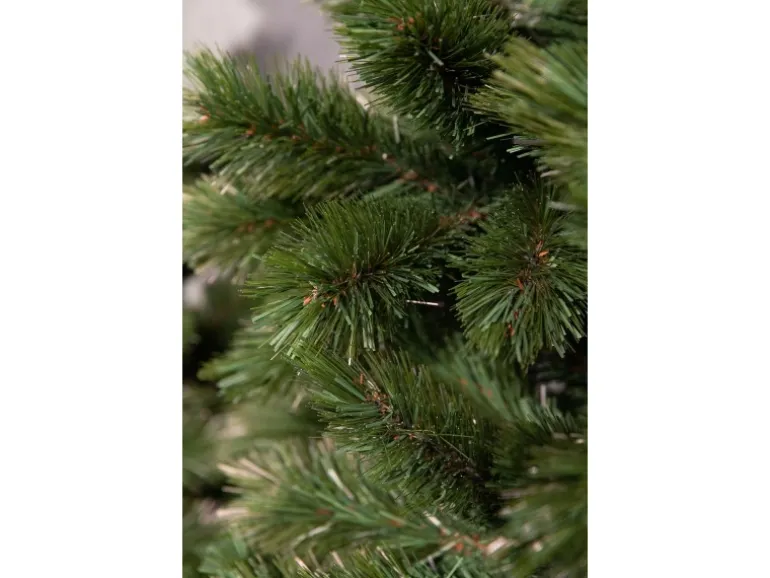 Die Kunsttanne wirkt dank satten Grün-Nuancen und braunen Astansätzen in ihren Zweigen täuschend echt. Durch sorgfältiges Formen erzielen die 482 Zweige dabei ein üppiges Erscheinungsbild. Mit einer Höhe von 185 cm und einem Durchmesser von ca. 109 cm an der breitesten Stelle bietet der Weihnachtsbaum ausreichend Platz für Weihnachtskugeln, Lichterketten und weiteren Baumschmuck.