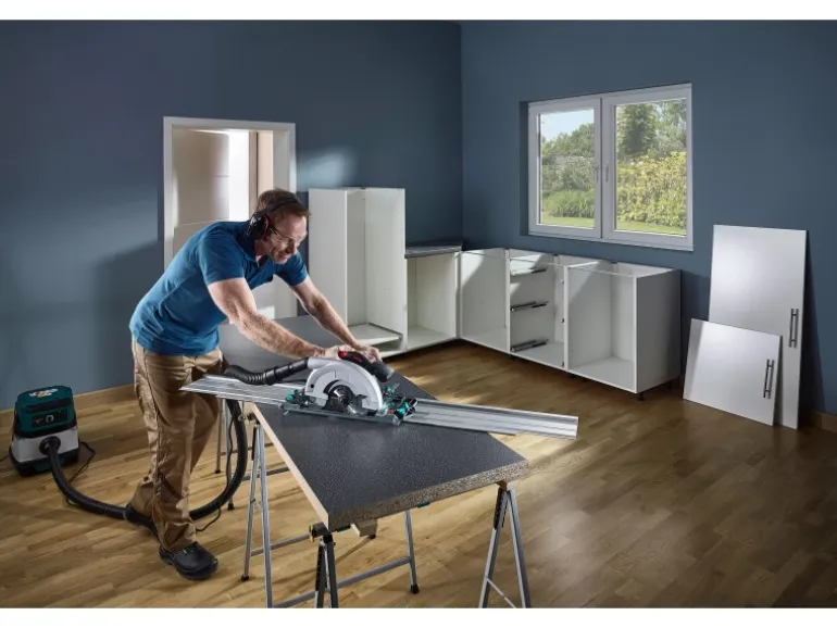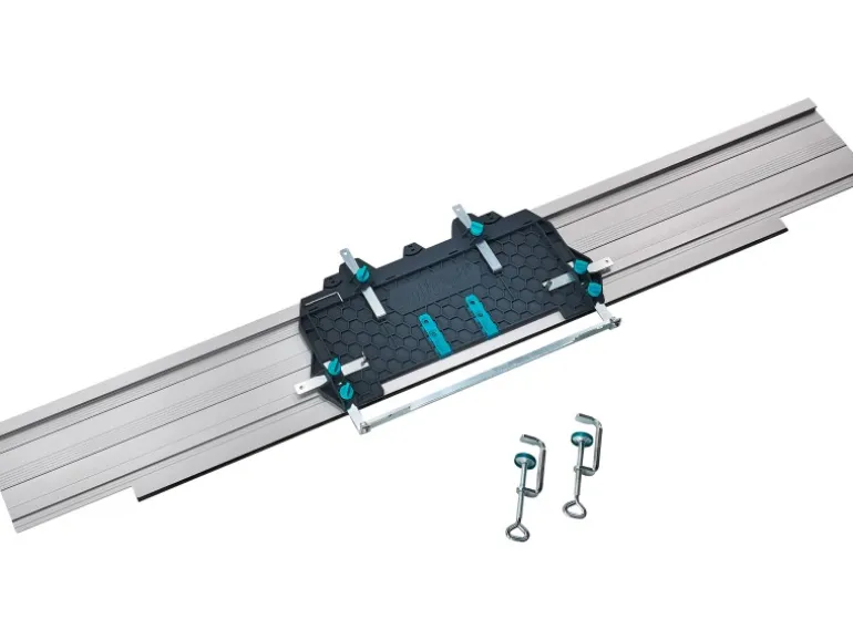 Die FKS 145 ist in der Mitte teilbar und kann über zwei Verbinder sicher zusammengefügt werden. Mit beiden Teilen zusammen erzielen Sie eine Schnittlänge von 110 cm – für eine Schnittlänge bis 55 cm reicht ein Teil aus. Möchten Sie extralange Werkstücke bearbeiten, können Sie die Führungsschiene mit dem optional erhältlichen Verlängerungsset (Artikel-Nr. 871668) auf eine Schnittlänge von 220 cm erweitern – das ideale Zubehör für Handkreissägen zum Zuschneiden und Kürzen von Türblättern und Küchenarbeitsplatten sowie für alle Arbeiten, bei denen es Ihnen auf Führung und Sicherheit ankommt.