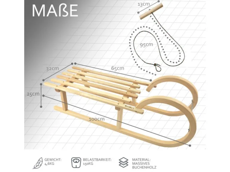 Sicherer Rodelspaß für Groß & Klein – stabiler Hörnerrodel aus massivem Buchenholz
