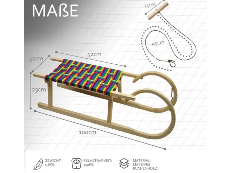 Sicherer Rodelspaß für Groß & Klein – stabiler Hörnerrodel aus massivem Buchenholz