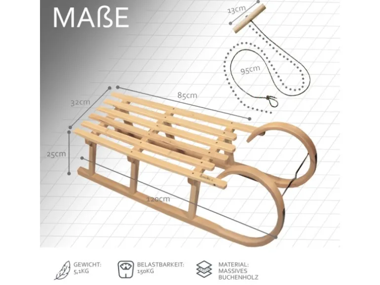 Sicherer Rodelspaß für Groß & Klein – stabiler Hörnerrodel aus massivem Buchenholz