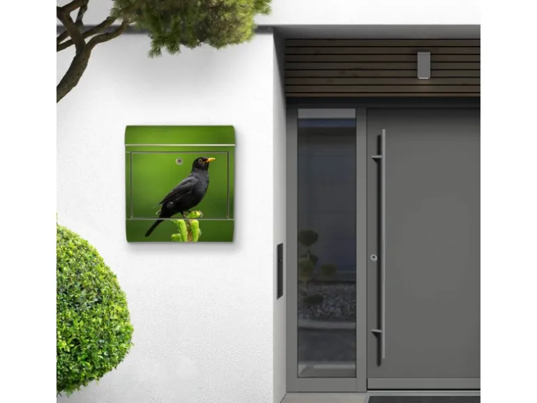 DESIGNDer Motivbriefkasten hat ein sehr ansprechendes und ausgefallenes Design, damit entlocken Sie Ihren Nachbarn und dem Postboten ein Lächeln. Heben Sie Sich ab von der tristen grauen Masse ohne auf Funktionalität zu verzichten.DETAILSDer Design Briefkasten mit Motiv Vogel auf Tannenzweig besteht aus hochwertigem 18/0 Edelstahl. Das Motiv besteht aus einer wetter- und UV-resistenten Folie, die mit einem Schutzlaminat überzogen ist. Der Briefkasten wird mit Montagematerial und zwei Schlüsseln geliefert.