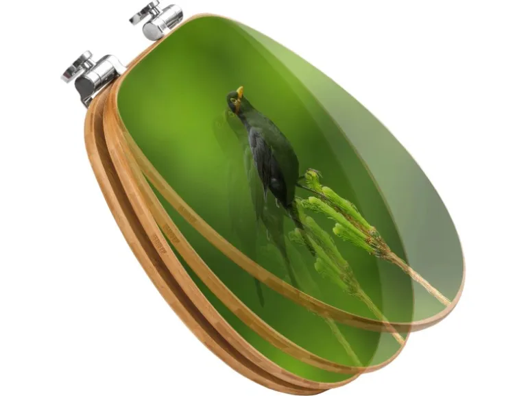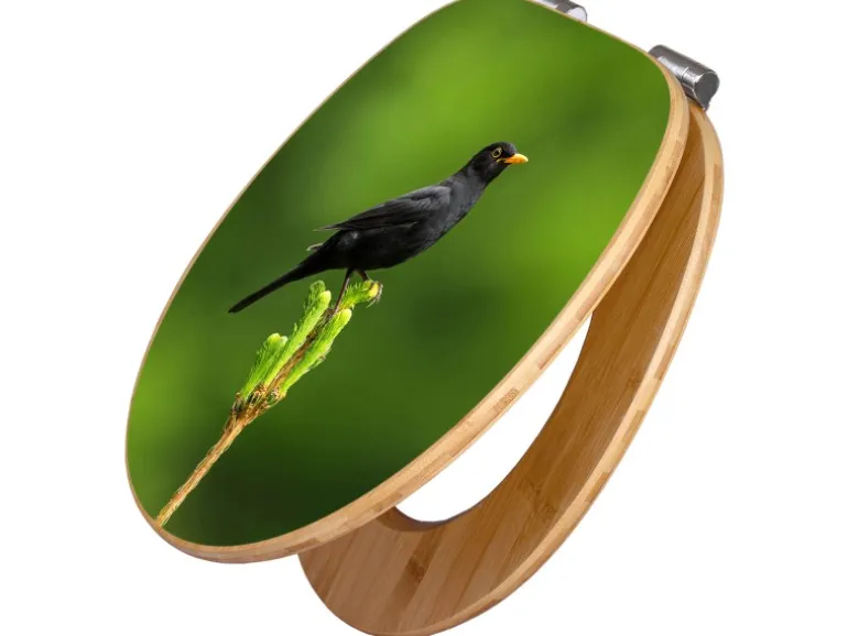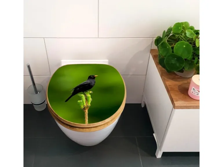 Der Klodeckel Bambus mit dem Motiv Vogel auf Tannenzweig hat eine besondere Optik, ist stabil und massiv. Das Motiv des Klodeckel Holz besteht aus einer Motivfolie, die durch das Schutzlaminat zusätzlich vor Kratzern schützt.