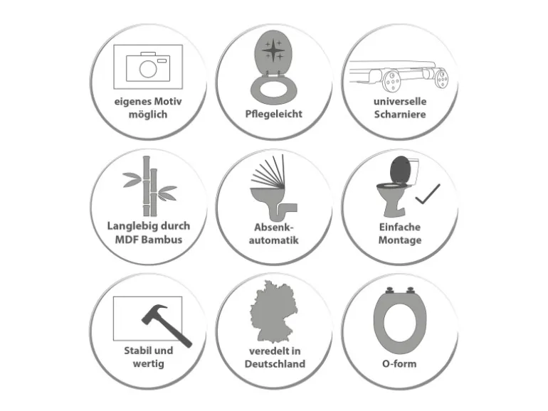 Sie erhalten den Toilettensitz mit bewährt schwerer Holz Qualität, Scharniere mit Absenkautomatik