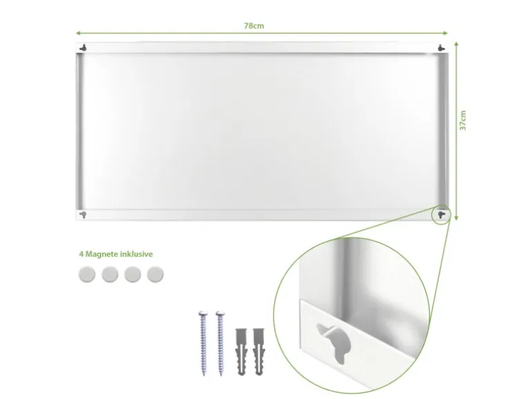 Sie können die Magnet Tafel auch dekorativ als Wandbild nutzen, es halten alle handelsüblichen Magnete daran. Ein Komplettpaket aus magnetischer Notiztafel mit 4 Magneten, Montageset & vorgefertigte Löscher für einfache Anbringung.