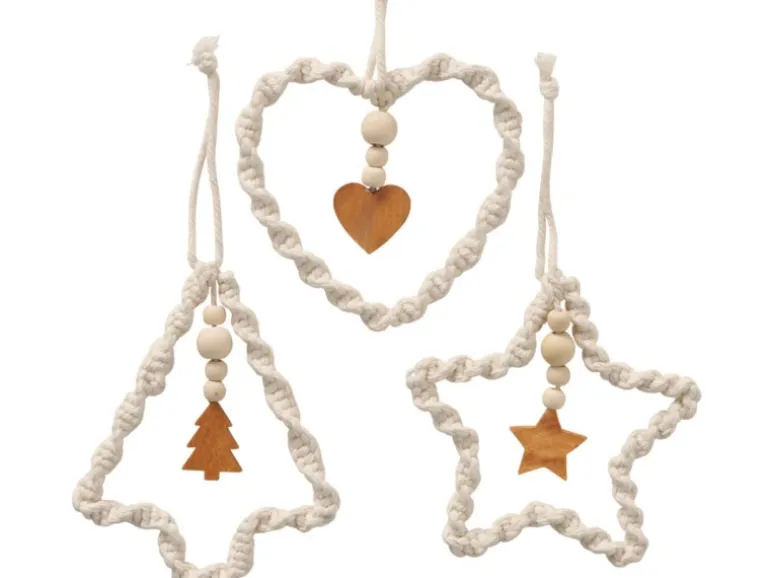 Der Boltze Home Dekoanhänger Elva ist ein echter Hingucker.Der Dekoanhänger in Herz-, Tannenbaum- und Sternform ist in Naturfarben gehalten. Sie ist mit Holzperlen und einer Makramee-Kordel für eine natürliche Winterdekoration von z. B. Fenstern, Türen und mehr geeignet. Höhe ca. 12 cm
