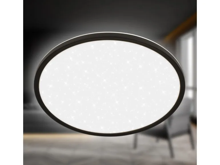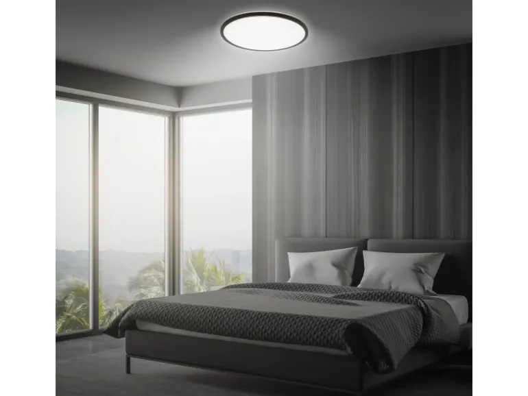 Mit einem Durchmesser von 37,5 cm und einer Höhe von nur 3,3 cm fügt sich die Schlafzimmerlampe dezent in Räume ein und eignet sich perfekt für niedrige Decken oder minimalistische Einrichtungsstile.