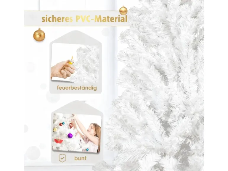 Darüber hinaus lässt sich dieser Baum einfach auf- und abbauen und nach den Feiertagen platzsparend verstauen. Dank seiner langlebigen Konstruktion behält er Jahr für Jahr ein frisches und attraktives Aussehen. Egal ob in Ihrem Wohnzimmer, Büro oder Schaufenster, dieser Weihnachtsbaum verleiht Ihrem Raum eine festliche und gemütliche Atmosphäre und ist die ideale Wahl für Ihre Weihnachtsdekoration.