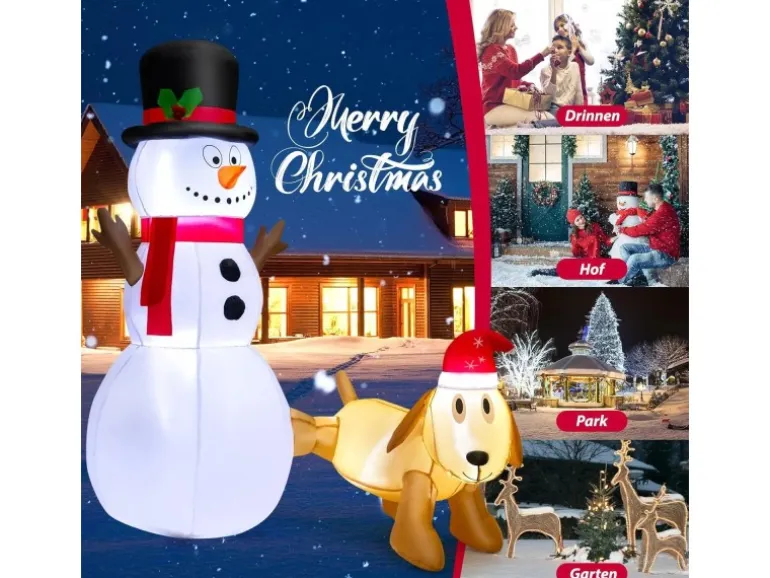 Der niedliche Schneemann und Hund sind eine lustige Weihnachtsdekoration
