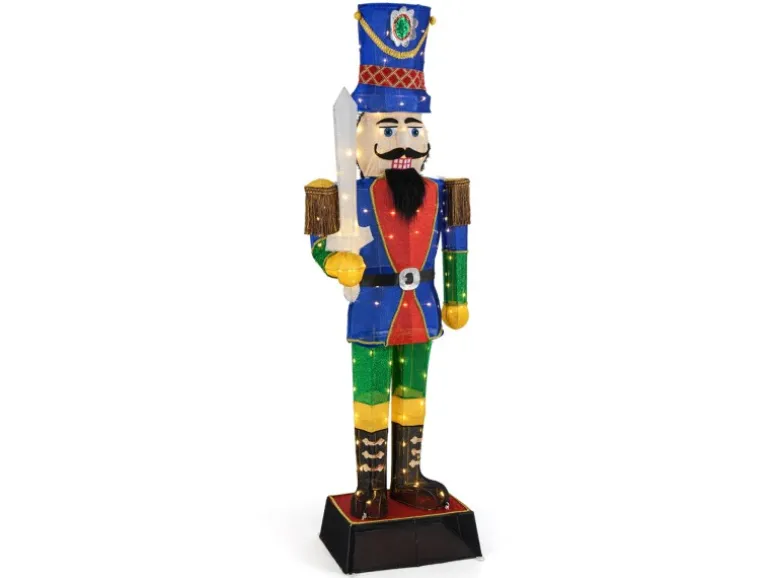 184 cm großer Nussknacker mit Schwert in der Hand und hohem Hut