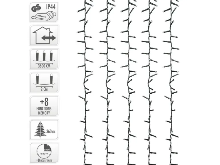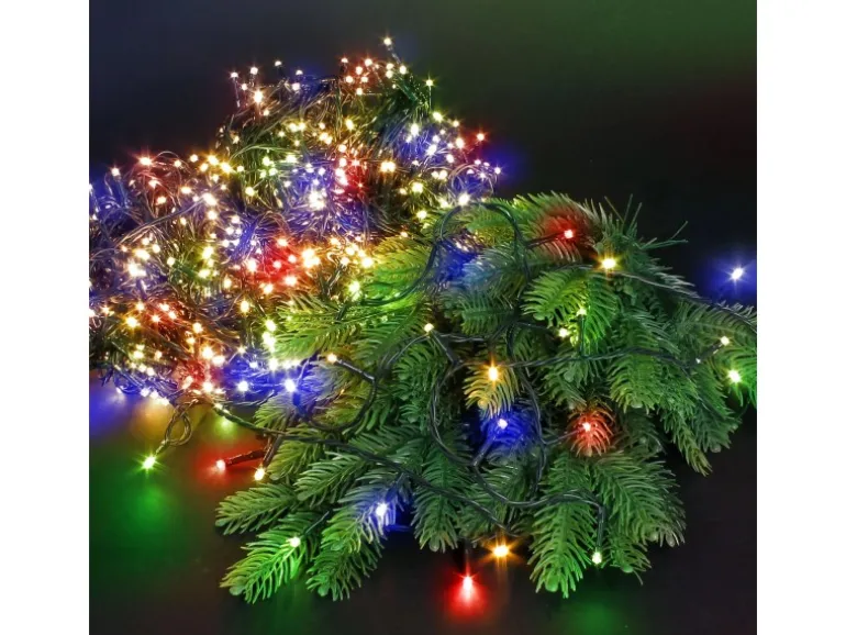 Die schöne LED-Clusterlichterkette von ECD Germany ist eine wunderbare Weihnachtsdekoration. Das bunte Licht passt ideal zur kalten Jahreszeit. Die Lichterkette lässt sich wunderbar an der Hauswand anbringen, auch am Tannenbaum macht sich die Weihnachtsdekoration gut. So ist die Lichterkette sowohl für Außen, als auch für Innen geeignet. Durch das 3 m lange Stromkabel, ist die Lichterkette sehr flexibel einsetzbar.