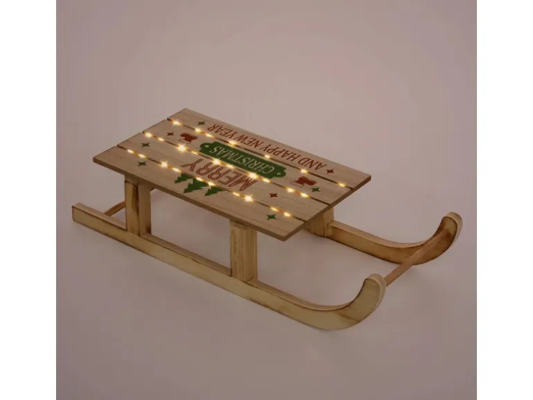 1 x Deko Holzschlitten mit Lichterkette