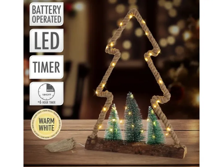 1 x Deko Jute Baum mit LED-Lichterkette und 3 kleinen Tannenbäumen von ECD-Germany
