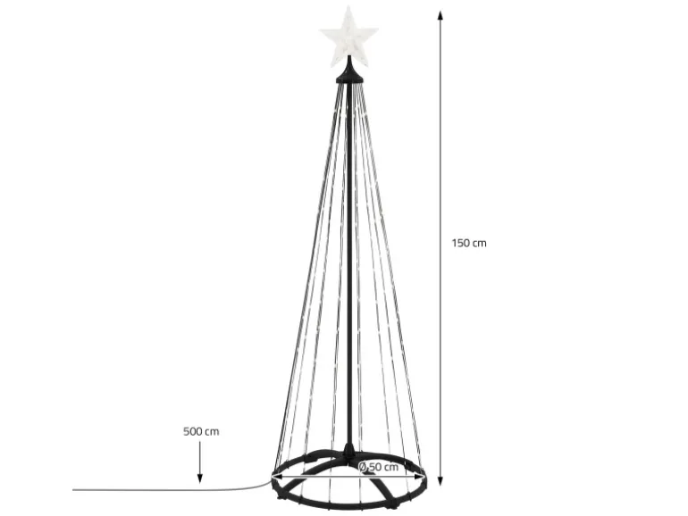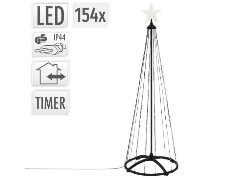 Diese hochwertige LED-Lichterkette sorgt für stimmungsvolle Beleuchtung deines Weihnachtsbaums – im Innen- wie im Außenbereich. Mit 154 warmweiß leuchtenden LEDs auf schwarzem Kabel und Gestell bietet sie ein edles, gleichmäßiges Lichtbild.