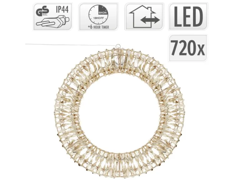 Dieser elegante Lichterkranz mit 720 warmweißen LEDs bringt festliche Stimmung in jeden Raum oder Garten und ist dank IP-44 Zertifizierung ideal für den Innen- und Außenbereich. Mit einem Durchmesser von 50 cm ist der Weihnachtskranz ein echter Hingucker und passt hervorragend als Tür-, Fenster- oder Wanddekoration. Der Kranz verfügt über eine praktische Timer-Funktion: 6 Stunden an, 18 Stunden aus – ideal für einen wartungsfreien Betrieb. Der Anschluss erfolgt unkompliziert an eine haushaltsübliche Steckdose, was die Verwendung besonders komfortabel macht.