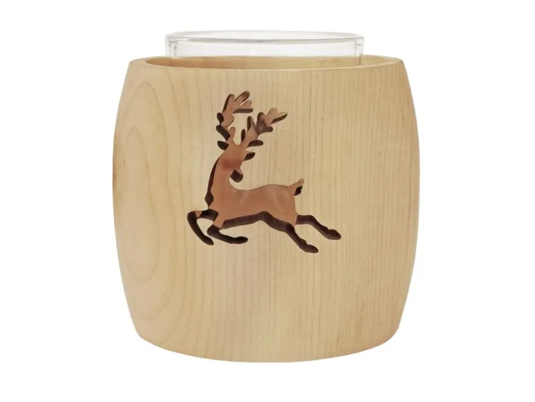 Zirben-Teelichthalter aus Holz mit Ausschnittmotiv und KerzenglasSchöne Zirben-Teelichthalter aus Holz mit Ausschnittmotiv und KerzenglasVariantenIn verschiedenen Varianten erhältlich 3er-Set: Stern, Hirsch und Herz Oder als Einzelstück je nach gewähltem MotivMaßeHöhe: 7,5 cm (mit Glas) Breite: 8 cmBeschreibungErleben Sie den Zauber der Natur in Ihrem Zuhause. Hergestellt aus aromatisch duftendem Zirbenholz strahlt der Teelichthalter nicht nur eine natürliche Wärme aus, sondern verbreitet auch ein Gefühl von Geborgenheit.Die liebevoll eingearbeiteten Motive Stern, Hirsch und Herz machen jedes der kleinen Windlichter zu einem einzigartigen Kunstwerk. Es passt sehr gut in gemütlich eingerichtete Wohninterieurs im Hütten-/ Chaletstil oder auf einen schönen Holztisch im Esszimmer oder Wohnzimmer.Als Kerzenhalter auf dem Fensterbrett wirkt jedes der hölzernen Windlichter besonders heimelig.Das Holzwindlicht wird stilvoll von einem edlen Glas ergänzt, das den flackernden Schein sanft reflektiert und für eine stimmungsvolle Atmosphäre sorgt.Die ausgeschnittene Form im Holz gibt den Blick frei auf die Kerzenflamme (Kerze im Lieferumfang nicht enthalten).Jedes Motiv verleiht dem Kerzenhalter eine persönliche, elegante Note und macht ihn zu einem einzigartigen Hingucker perfekt, um sich selbst oder einen geliebten Menschen zu beschenken.