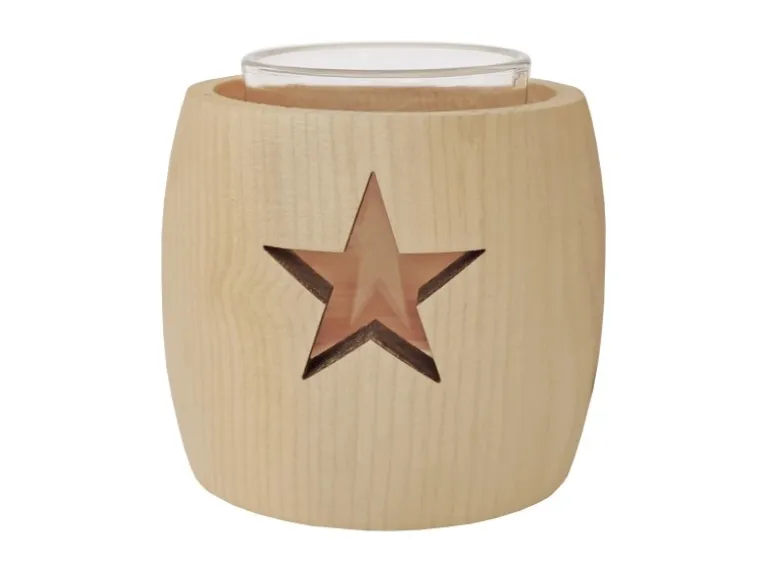 Erst-Holz Zirben Teelichthalter mit Glas und Ausschnitt Stern 3er Set
