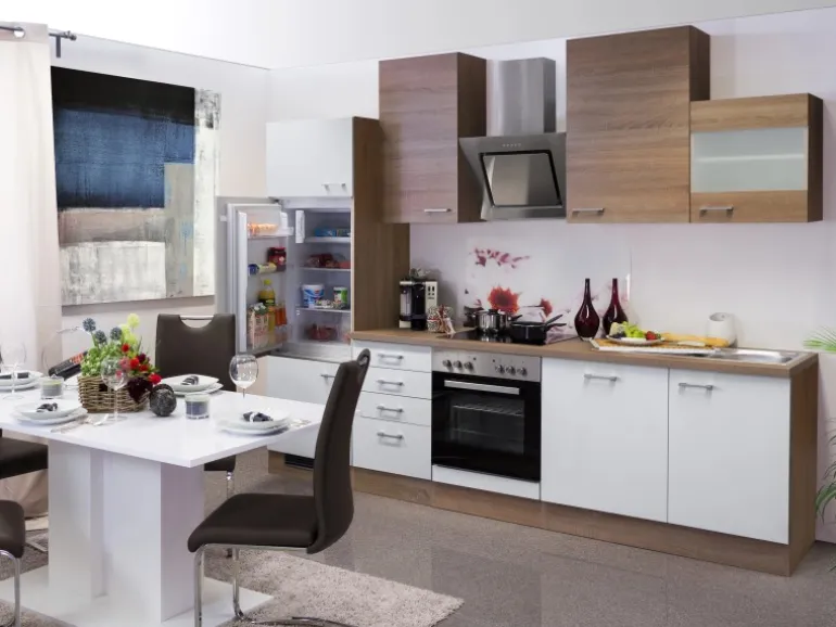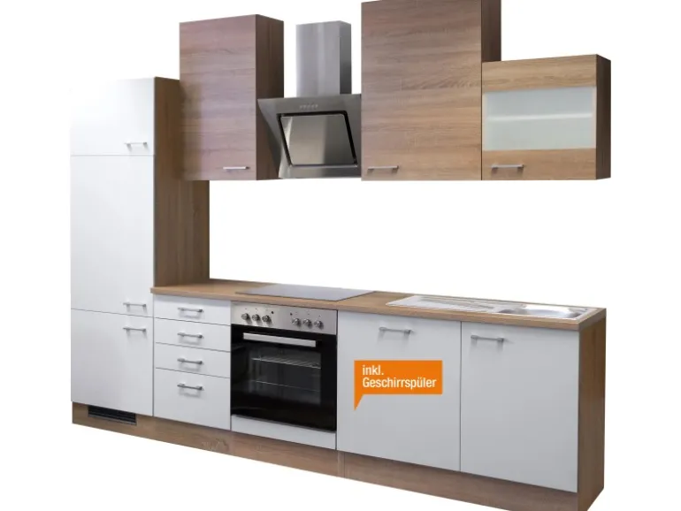 Die 280 cm breite Küchenzeile besteht aus (BxHxT):