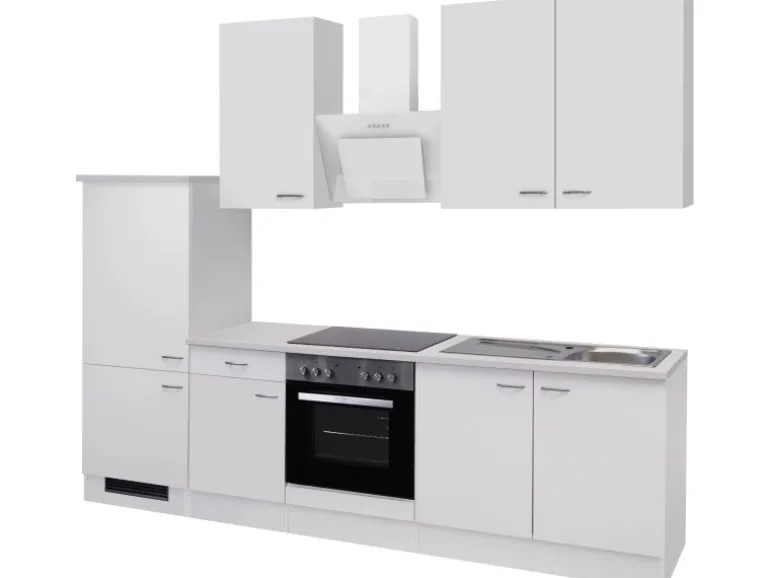 Die 270 cm breite Küchenzeile besteht aus (BxHxT):