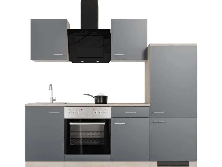 Ob erste Wohnung, Single-Haushalt, Ferienwohnung oder im Büro – diese kleinen Küchen von 220 cm Breite überzeugen durch ihr Design und die vielfältigen Funktionen. Die Türen der Schränke sind sowohl für den links- als auch rechtsseitigen Aufbau vorbereitet, was Ihnen ein Höchstmaß an Flexibilität bei der Montage bietet. Die hochwertigen und pflegeleichten Kunststofffronten und die stabile Bauweise der Schrankkörper garantieren Ihnen lange Freude an Ihrer Küche.