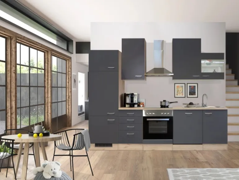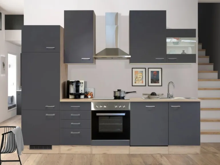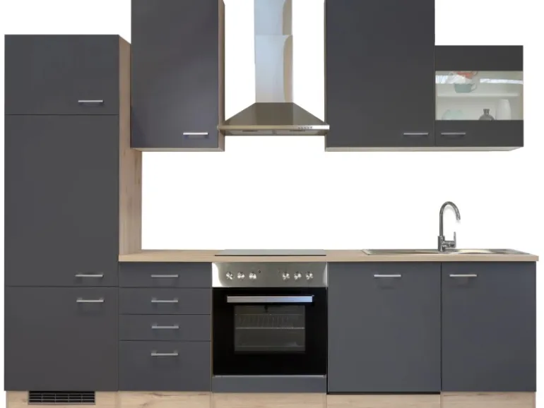 Die 280 cm breite Küchenzeile (B x H x T) besteht aus: