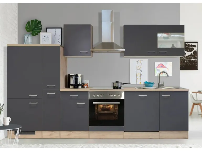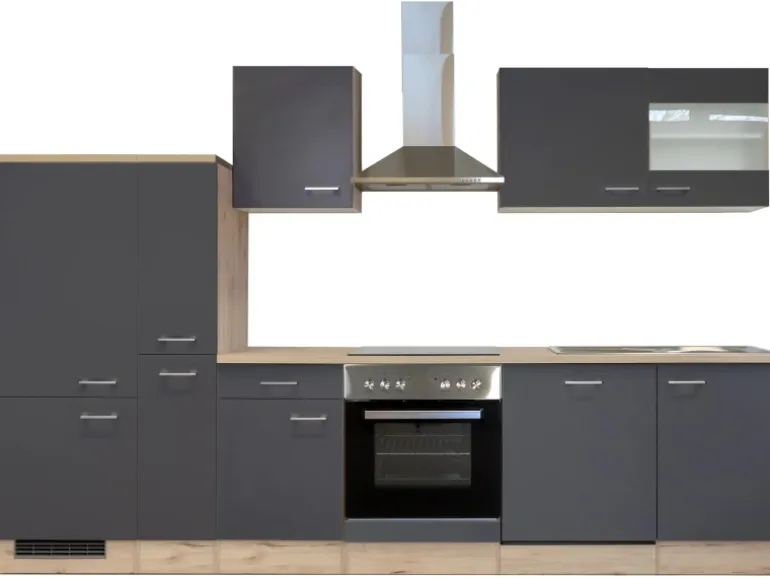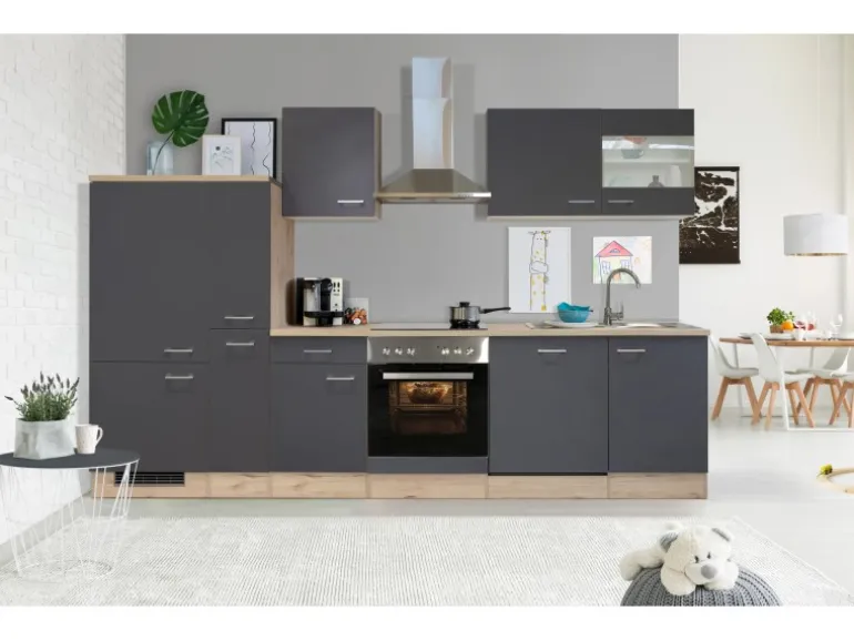 Die 310 cm breite Küchenzeile (B x H x T) besteht aus: