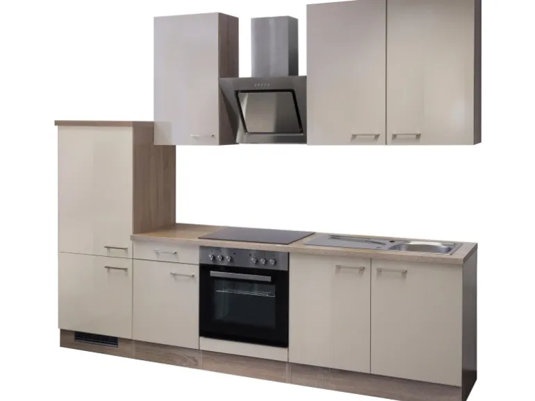 Die 270 cm breite Küchenzeile besteht aus (BxHxT):