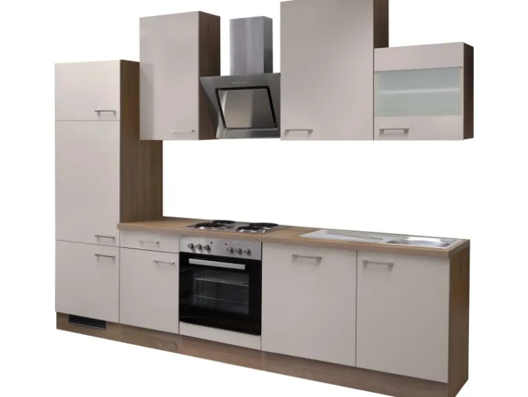 Die 280 cm breite Küchenzeile besteht aus (BxHxT):