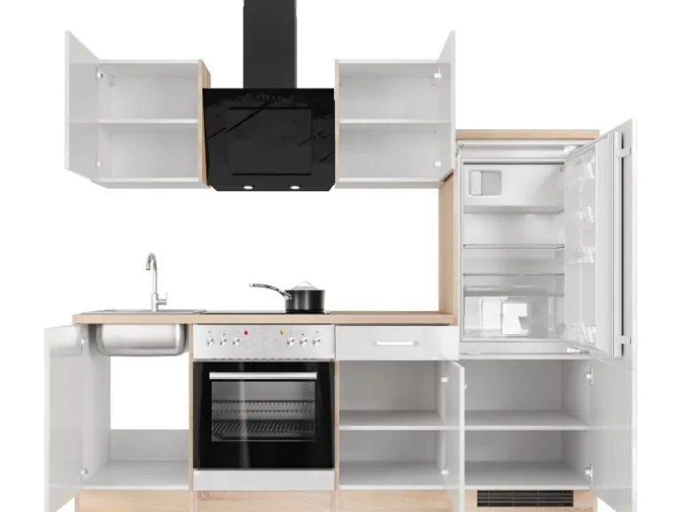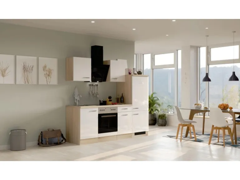 Ob erste Wohnung, Single-Haushalt, Ferienwohnung oder im Büro – diese kleinen Küchen von 220 cm Breite überzeugen durch ihr Design und die vielfältigen Funktionen. Die Türen der Schränke sind sowohl für den links- als auch rechtsseitigen Aufbau vorbereitet, was Ihnen ein Höchstmaß an Flexibilität bei der Montage bietet. Die hochwertigen und pflegeleichten Kunststofffronten und die stabile Bauweise der Schrankkörper garantieren Ihnen lange Freude an Ihrer Küche.