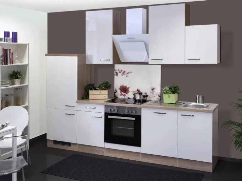 Inkl. Einbaukühlschrank mit Gefrierfach EEK: E und Einbaubackofen EEK: A mit Glaskeramikkochfeld