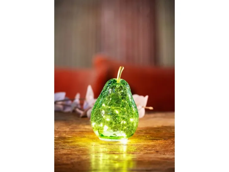 Verleihen Sie Ihrem Zuhause einen Hauch von Magie. Die handgefertigten LED Glasfrüchte sind ein echter Hingucker. Die integrierten Micro-LED’s erzeugen ein warmes, weiches Licht das jede Ecke Ihres Zuhauses in eine gemütliche Oase verwandelt. Der praktische 6-Stunden-Timer schaltet die Beleuchtung automatisch ein und aus. Benötigt werden 2 AAA Batterien, nicht im Lieferumfang enthalten.