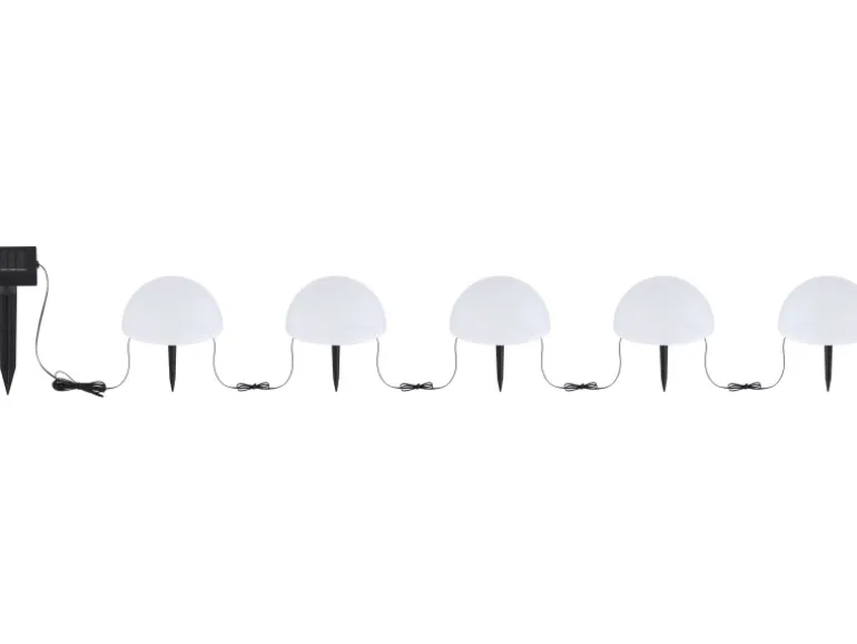 Diese Globo LED-Solaraußenleuchte mit Erdspieß und RGB-Kette besteht aus fünf kuppelförmigen Einzelelementen (ø 15 cm) aus weißem Kunststoff, die jeweils mithilfe der Erdspieße unkompliziert in weichen Untergrund platziert werden können. Samt Kabel beträgt die Länge der Solaraußenleuchte 4,75 m, in welchen Abständen Sie die fünf Einzelelemente platzieren, bleibt jedoch Ihnen überlassen. Die inkludierten RGB LED-Leuchtmittel sorgen für ein farbenfrohes Lichtspiel in Ihrem Garten (Automatisch Grün, Orange, Rot). Dadurch kann Ihr Außenbereich stilvoll in Szene gesetzt werden.