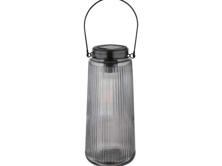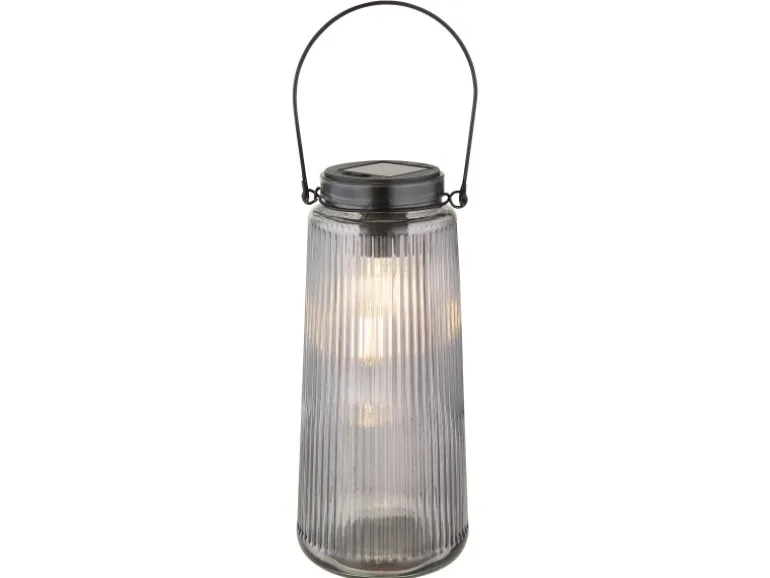Der Schirm aus rauchfarbenem Glas und klarem Kunststoff verleiht der Laterne ein modernes Aussehen und sorgt für eine stimmungsvolle Beleuchtung. Ob zum Hängen an einem Haken oder zum Stellen auf einem Tisch, die Laterne lässt sich flexibel platzieren und ist sowohl für den Innen- als auch den Außenbereich geeignet.